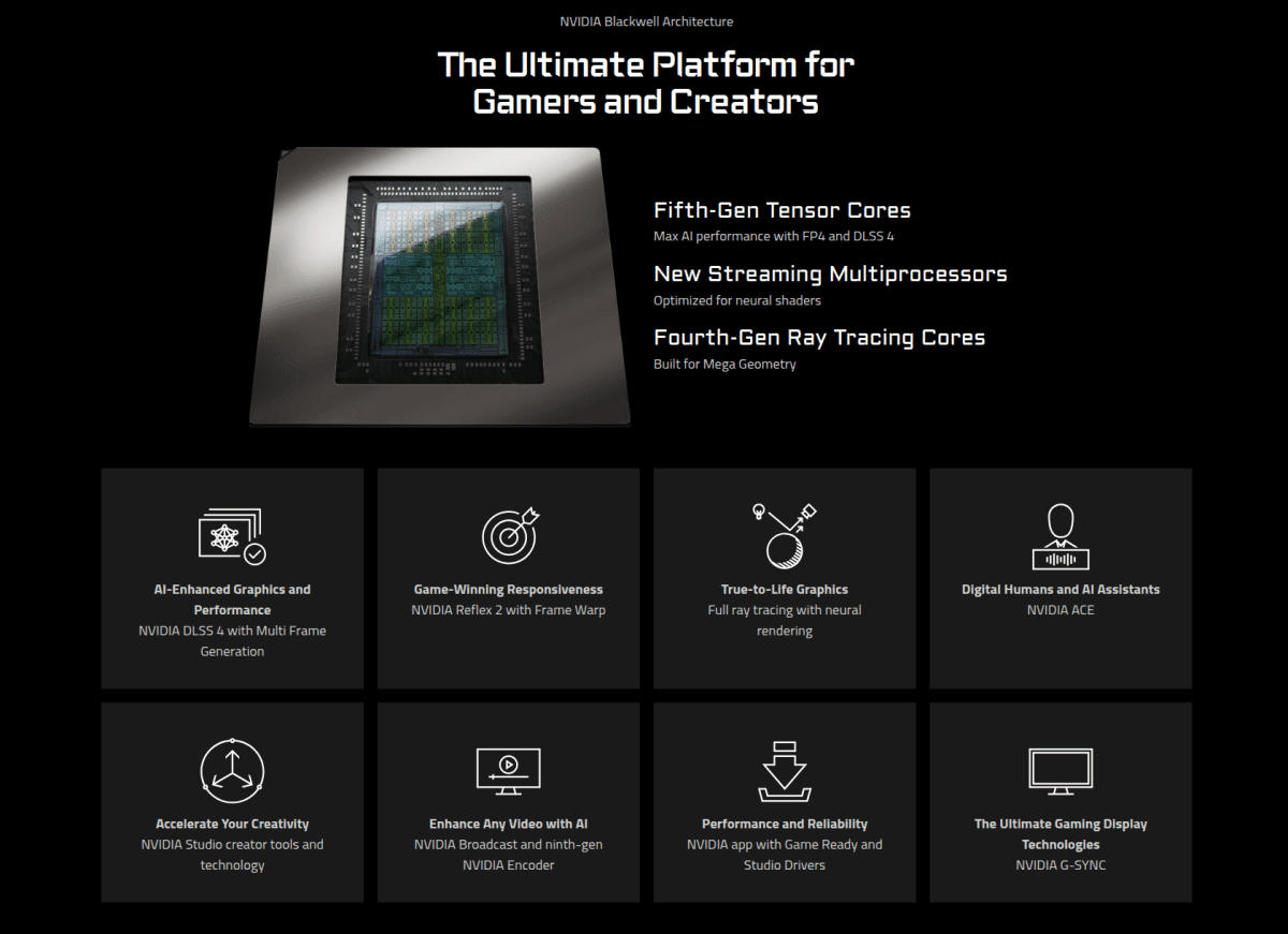 - Mémoire 16 Go GDDR7 (192-bit, 672 Go/s) : Suffisante pour le gaming 1440p/4K et les applications créatives