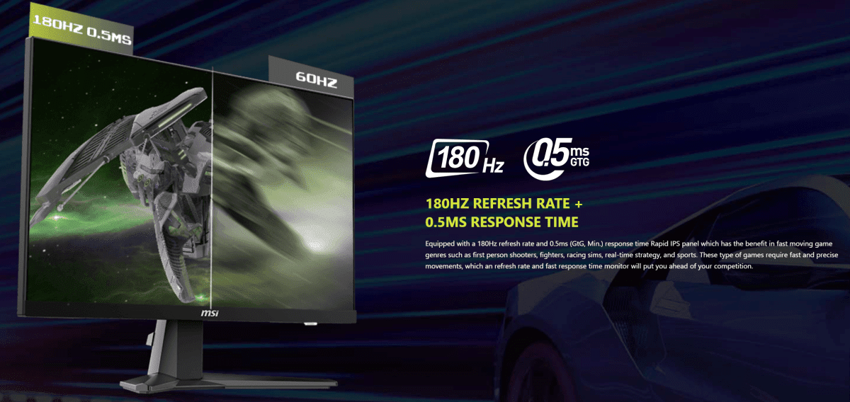 - Taux de rafraîchissement de 180 Hz et temps de réponse de 1 ms gris à gris